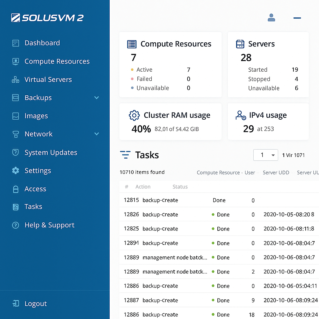 Even if you choose Virtualizor or Proxmox, SolusVM remains one of the most stable and widely supported platforms for VPS management.